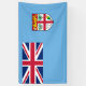 This design features the national flag of Fiji (officially known as the Republic of Fiji), which is an island country in Melanesia, part of Oceania in the South Pacific Ocean. The country lies around 1,300 miles northeast of New Zealand. Fiji consists of an archipelago of more than 330 islands, of which around 110 are permanently inhabited, and more than 500 islets, amounting to a total land area of just over 7,000 square miles. The most outlying island group is Ono-i-Lau. The vast majority of Fiji's population lives on the two major islands, Viti Levu and Vanua Levu. Around three-quarters of Fijians live on Viti Levu's coasts: in the capital city of Suva or in smaller urban centres such as Nadi, where tourism is the major local industry, or in Lautoka, where the sugar-cane industry is dominant. The interior of Viti Levu is sparsely inhabited.