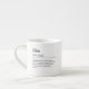 This minimalist espresso cup features a dictionary style definition of fika in black typography and clean and simple design. What does fika mean? The swedish word fika has no equivalent in the English language and refers to a delightful Swedish tradition of enjoying coffee or tea with treats, emphasizing social connection and the joy of simple pleasures. This espresso cup is perfect for your own coffee break and makes a perfect gift for any coffee lover and the friends you share your coffee with.