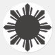 Filipino Sun. This is the sun with rays that you would see on the Philippine flag with the three stars. The design is offered in black, white, red, blue and yellow. You can customize them to fit your wants and needs.