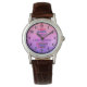 I like the illustrative watch with the lady on it. It is a great reminder that I am blessed and it has a very sturdy leather band. The colors are true and vibrant. Love the color of the Leather also. Very nice.