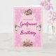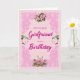 Une jolie carte d'anniversaire pour une petite amie. Une élégante traçerie en ensembles roses des quatre roses roses. L'arrière - plan est un motif de fleurs rose pâle. Une belle carte à envoyer à une petite amie pour son anniversaire.
