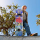 Fille avec les oiseaux Skateboard amis
