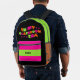 Ce sac à dos amusant est composé d'une combinaison de couleur cool vert, orange et rose avec un peu de noir mélangé. La conception de la typographie a fait des lettres ondulées pour les mots "À l'ère de ma classe". C'est un grand sac à dos pour les enseignants et les élèves. Copyright Kathy Henis