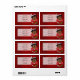 Étiquette avec l'illustration d'une mignonne fille afro-américaine souriante avec une coiffure afro, la fille porte un costume de Santa Clause avec un casquette rouge et tient un cadeau ; dans un cercle rouge sur un arrière - plan rouge, avec un modèle texte modifiable pour votre nom ou message