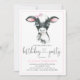 Invitations pour la fête d'anniversaire de la vache avec mignon bébé veau de vache aquarelle portant un arc rose sur un arrière - plan de pois rose. Ces adorables invitations de fête d'anniversaire de vache nombreuses sont facilement customisées pour votre événement en ajoutant simplement vos détails. Vous pouvez également ajouter une couleur arrière - plan.