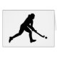 Le joueur féminin de fieldhockey de femme de fille d'hockey de champ folâtre le bâton