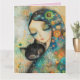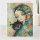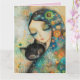 FILLE ET CHAT CARTE DE SALUT D'ANNIVERSAIRE DE L'A