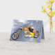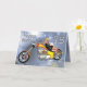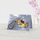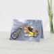 Une fille blonde allongée sur une moto chopper avec des étoiles et des nuages en arrière-plan. Une excellente carte d'anniversaire pour un passionné de moto.
