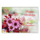 Une carte d'anniversaire pour votre fille adoptive. Fleurs d'hellebore roses, également appelées rose de noël, dressées contre un arrière - plan de feuilles rouges de l'arbuste cotinus.