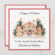 Cette carte de Noël convient aux jumeaux mixtes ou à un seul enfant lors de leur premier ou deuxième Noël. Le design comprend des flocons de neige aquarelle, des arbres de Noël, une maison en pain d'épice, des personnages en pain d'épice pour filles et garçons et un bonhomme de neige.