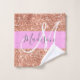 Glam et rose girly, pêche, parties scintillant dorée scintillent le nom de monogramme blanc et le linge de toilette initial. Votre nom personnalisé et votre monogramme sont écrits dans un élégant script écrit à la main avec un arrière - plan rose. Vous pouvez modifier la couleur du texte, le style et la taille de police à l'aide de l'option personnaliser. Un cadeau d'anniversaire ou de Noël parfait !