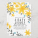 Customisez cet élégant Baby shower moderne clair Invitation avec de jolies fleurs tropicales jaunes blanches sur un arrière - plan blanc, parfait pour une petite fille. Conçu comme un modèle pour une personnalisation facile. Les Stickers Favor Merci correspondants se trouvent ici :