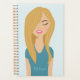 Ce planificateur présente l'illustration de Destei d'une belle fille aux cheveux blonds très volumineux. Un oeil est couvert de ses cheveux tandis que l'autre oeil est fermé. La fille porte une chemise bleue et ses lèvres sont roses. Il y a une zone de texte personnalisable pour un nom qui passe sur la chemise.