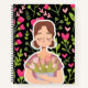 Apportez calme et bonheur à vos notes avec cette adorable couverture de carnet fleuri ! Il présente une jeune fille illustrée douce tenant paisiblement un bouquet de tulipes roses, entourée d'un charmant motif de fleurs fleuries et de feuilles verts sur un arrière - plan noir. Parfait pour les amateurs de fleurs, de journalisation, de croquis, ou comme un cadeau réfléchi pour quelqu'un de spécial. Cette esthétique mignonne et cosy fera de chaque page une sensation de paix et d'amour.