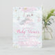 Unicorn invitation à la douche bébé avec adorable licorne bébé sur de jolis nuages pastel aquarelle sur un arrière - plan pastel. Ces invitations pour les douches pour bébés à licorne mignonne sont facilement customisées pour votre événement en ajoutant simplement vos détails.