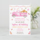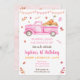Cette invitation présente de mignonnes feuilles d'automne et un camion rose rempli de foin et de citrouilles.