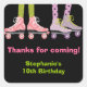 Des filles en patins à thème amusants et mignonnes de motifs et de pois colorés se promènent dans ce brillant et heureux patinage à rouleaux thème fête d'anniversaire préfèrent autocollant.