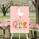 Cette jolie fille fantaisie de 1er anniversaire design de signe de bienvenue comprend une oie stupide avec un casquette de fête rose, et peut être personnalisée avec le nom de votre enfant dans la typographie mignonne et colorée. Le design de la ferme parfait pour le premier anniversaire de votre petit!