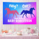 Will it be a filly or a colt? This fun western style design will invite people to come and find out!