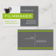 Filmmaker grey, white, lime green eye-catching business card featuring a vitage 35 mm movie style camera in black on white, grey background and an lime green band with the text "FILMMAKER". A great professional business card template for the film maker, director, movie maker, film producer, cinematographer, videographer, video producer, camera operator or cameraman.