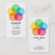 A clear stylish and attractive business card template with a geometric abstract motif made up of five overlapping semi-transparent circles in five different colours arranged around a centre point.. Main company details on the front, with name and personal contact details on the back, with the same motif and style.