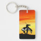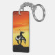 La silhouette Fin du sentier avec porte - clé de coucher de soleil