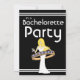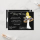 A yellow haired bride-to-be holding strappy white sandals in her hand while dancing in the centre of a wedding band is the centerpiece of this whimsical bachelorette party invitation. Text reads: "Final fling before the ring". There is plenty of customizable text to add your party information. The other side of this invitation has this trendy graphic with additional customizable text. We also have this bride available with other hair colours. Buy in bulk and save!