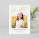 This stylish graduation announcement and invitation features a single photo with the word finally in gold foil above it. The back of the card can be used for an invitation or a personal message.