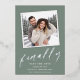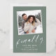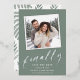 Share the news of your long-awaited engagement with these chic save the date cards featuring a square photo with a deckled border. "Finally" appears in silver foil calligraphy script, with your names, wedding date, and additional details beneath.