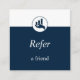 Financial planner refer a friend square business card is a branded promotional card useful to any entrepreneur to gain referrals. Replace the logo, define the condition, and the rewards once fulfilled. Customize the name and contact details. Then adjust what the referrer and referral will receive and label the custom fields. Further customization of font, font size, font colour, and colour of background and shapes are possible. Should you require assistance or want to discuss a custom design, contact https://t.me/KBMD3signs_chat.