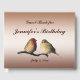 A pair of house finches perched on a branch adorn this lovely birthday party guest book. The male has red plumage on his head and breast. The female is tan and brown with stripes. Personalize the text for your special occasion.