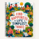 This heartwarming and inspiring design beautifully illustrates the message to "FIND HAPPINESS IN LIFE'S SIMPLEST THINGS." It depicts various people enjoying simple pleasures like picnics, reading, playing, and spending time in nature under a bright sun. Perfect for promoting mindfulness, gratitude, and appreciating the small joys in everyday life. This vibrant and cheerful art is ideal for home decor, stationery, inspirational gifts, apparel, mugs, and products that spread positivity.