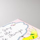 Find Joy in the Simple Things. A positive saying / quote inspiration written on a cloud with a little girl sketch drawing on a swing surrounded with cute birds, a birdhouse, butterflies, flowers and a bee. In pink, blues, and yellow colours.