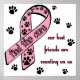 Another design that is more generic for dog lovers & supporters of the efforts to find a cure for cancer in our dogs. Once again, we have a beautiful pink awareness ribbon that has ‘Find a Cure’ on it along with paw prints. The rest of the design has more prints with the slogan ‘our best friends are counting on us’.