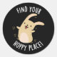 Find Your Hoppy Place Funny Rabbit Pun Dark BG Classic Round Sticker