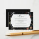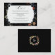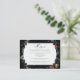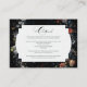 This chic enclosure card design features an 18th century Dutch floral still life, including white, red and gold tulips and wildflowers, on a black background with custom centre label, complementary floral graphics and elegant flowing custom calligraphy. The back features an optional floral wreath with monogram template.