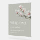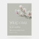 Fine art magnolia branch on a transparent sage green background wedding welcome board.