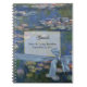 Lovely spiral notebook with Claude Monet's painting Water Lilies as the background. Graphics of a gold tone edged text field and lovely graphics of a blue satin looking ribbon finishes off the colourful guest book. Black text is ready to personalize for your wedding. Matching wedding products available, see links below.