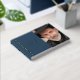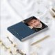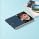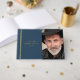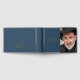 In Loving Memory, Funeral / Celebration of Life photo guestbook, with a simple, minimal, and elegant design with a soft velvety hardcover in blue, and real foil in stripes, and text details. Ability to change "In loving memory" to "Celebrating the Life of" by using the template text box. Choose from three size options and three foil colours: gold, silver, or rose gold. Personalize it with your loved one information on the front and spine and add on the back any message you like.