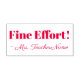 This motivating rubber stamp design features the inspiring feedback message "Fine Effort!" and a personalized teacher name. It could be used by a teacher, educator, instructor, or tutor when marking assignments, to indicate that a student has done well.