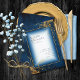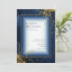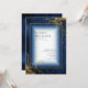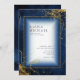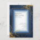 A watercolor background in shades from royal blue to navy is topped by an abstract of fine gold lines and glittering lighting effects to create the pieces of this beautiful wedding suite. The wedding 'Invitation' card shown here also features off-centered text and a beautiful gradient frame to hold all your text. Easily add your own names, wedding date and event details using the provided template. Search ID867 to see other pieces and color choices for this set.