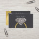 A fancy diamond with faux gold ring band and textured deep grey background. Dramatic design leaves an impression second only to your gorgeous baubles. Order indestructible cards that will last almost as long as a diamond for added luxury.