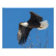 A beautiful female bald eagle in flight against a vivid blue sky.