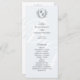 Minimalist simple black and white monogram crest wedding program: Vintage-inspired line art monogram crest with elegant typography. Behind the text ther is a modern large monogram creating a stylish background. Depending on what letter is in the monogram it might need some adjustment. Enter design tool to move the letters to your liking.
