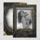 A watercolor background in shades from charcoal grey to black is topped by an abstract of fine gold lines and glittering lighting effects to create this beautiful graduation invitation. The card also features elegant calligraphy and a gradient frame to hold your photo. Easily add your own personal event details using the provided template. Search ID867 to see other pieces and colour choices for this set.