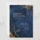 A watercolor background in shades from royal blue to navy is topped by an abstract of fine gold lines and glittering lighting effects to create the pieces of this beautiful wedding suite. The wedding 'Invitation' card shown here also features off-centred text; and a fine gold mesh border on the reverse. Easily add your own names, wedding date and event details using the provided template. Search ID867 to see other pieces and colour choices for this set.