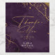 A watercolor background in shades of plum purple is topped by an abstract of fine gold lines and glittering lighting effects to create the pieces of this beautiful wedding suite. The wedding wine label shown here also features 'Thank You' calligraphy and a personal message along with the bride and groom's names and wedding date. Search ID867 to see other pieces and colour choices for this set.
