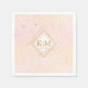 A watercolor background in shades of rose gold is topped by an abstract of fine gold lines and glittering lighting effects to create the pieces of this beautiful wedding suite. The wedding paper napkin shown here also features a gradient, diamond-shaped frame to hold the bride and groom's initials and wedding date. Search ID867 to see other pieces and colour choices for this set.