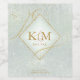 A watercolor background in shades of sage green is topped by an abstract of fine gold lines and glittering lighting effects to create the pieces of this beautiful wedding suite. The wedding wine label shown here also features a gradient, diamond-shaped frame to hold the bride and groom's initials and wedding date. You also have the option to add the type of wine and a personal message using the provided template. Search ID867 to see other pieces and colour choices for this set.
