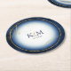 A watercolor background in shades from royal blue to navy is topped by an abstract of fine gold lines and glittering lighting effects to create the pieces of this beautiful wedding suite. The wedding paper coaster shown here also features a gradient, gold-edged frame to hold the bride and groom's initials and wedding date. Search ID867 to see other pieces and colour choices for this set.